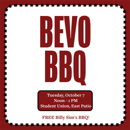 Get ready for the Red River Rivalry at Bevo BBQ! Join us on the East Patio of the Student Union for a pre-game celebration ahead of the OU vs. Texas showdown! Come meet fellow students and enjoy lunch together. There will be FREE Billy Sim's BBQ, games, and music. Food is available while supplies last, so don't miss out!