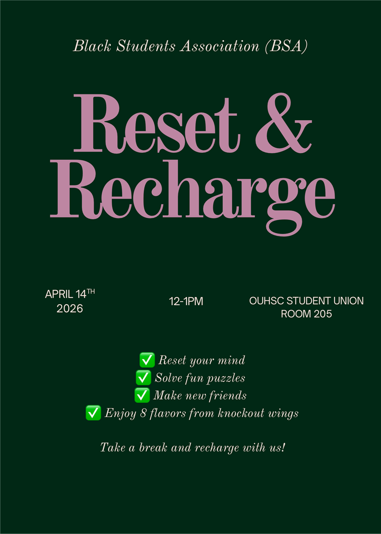 Join BSA this Tuesday for Reset & Recharge in Student Union Room 205! With finals coming up, take a study break to relax, chat, solve puzzles and eat some delicious wings! See you there!