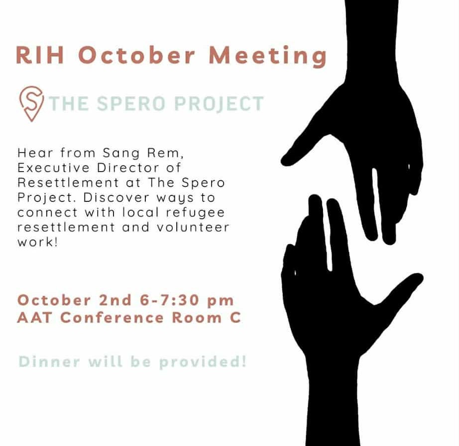 Join us 10/2 in Andrews Academic Tower Conference Room C from 6:00-7:30 PM to learn about the advocacy work of the SPERO Project, their role in refugee resettlement, and what you can do to help. Food will be provided. We hope to see you there!
