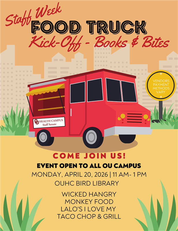 Students are invited to help kick off Staff Week with Books & Bites, a fun, campus‑wide event combining great food, creativity, and a love of reading! Join us on Monday, April 20 from 11:00 a.m. to 1:00 p.m. at the Robert Bird Library for a lively Food Truck Kick‑Off featuring local favorites Wicked Hangry, Monkey Food, Lalo’s I Love...